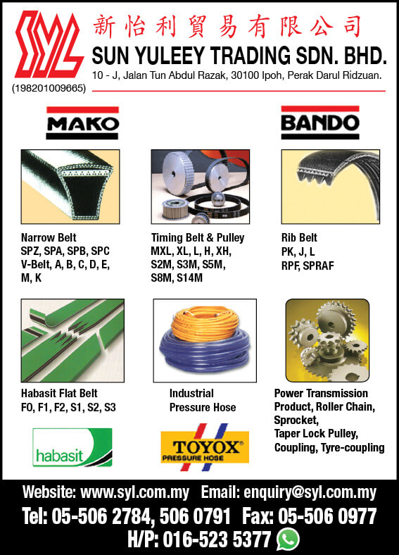 Sun Yuleey was incorporated in 1982, IPOH. Our core business at that time was supplying Automotive Fan Belts, V-Belts, Air Condition Belts, Variable Speed Belts & Timing Belts. Ever since then, Sun Yuleey has been appointed as distributor for “Bando” & “Mako” brands. We also specialized in conveyor belt, transmission belts, processing belts, and belts used for food processes.